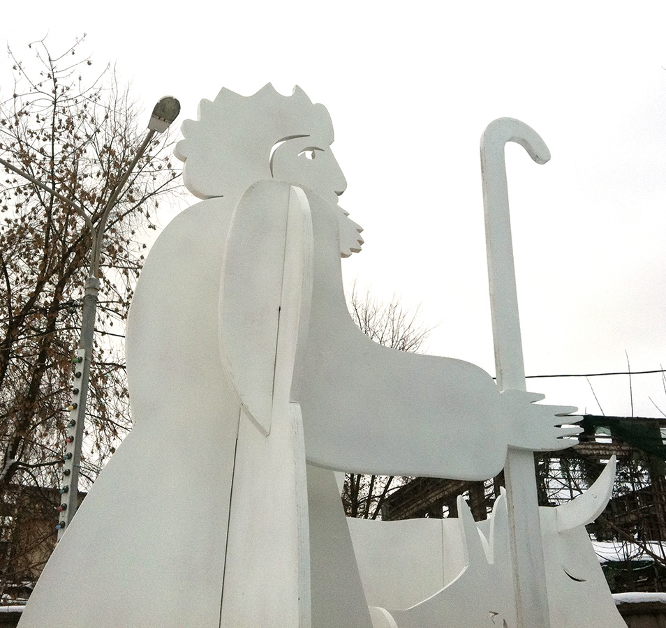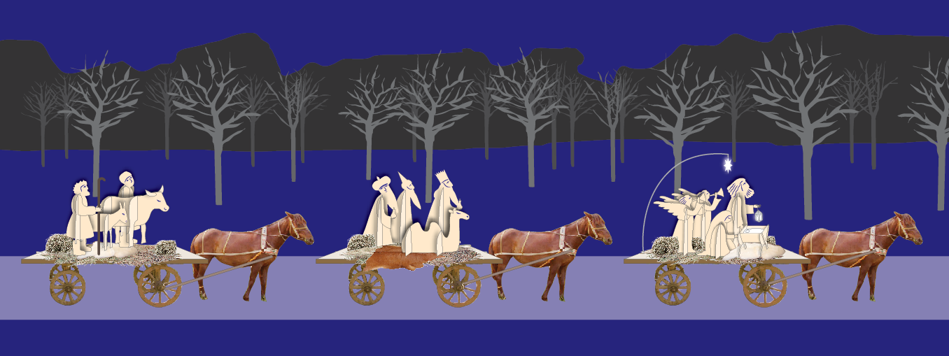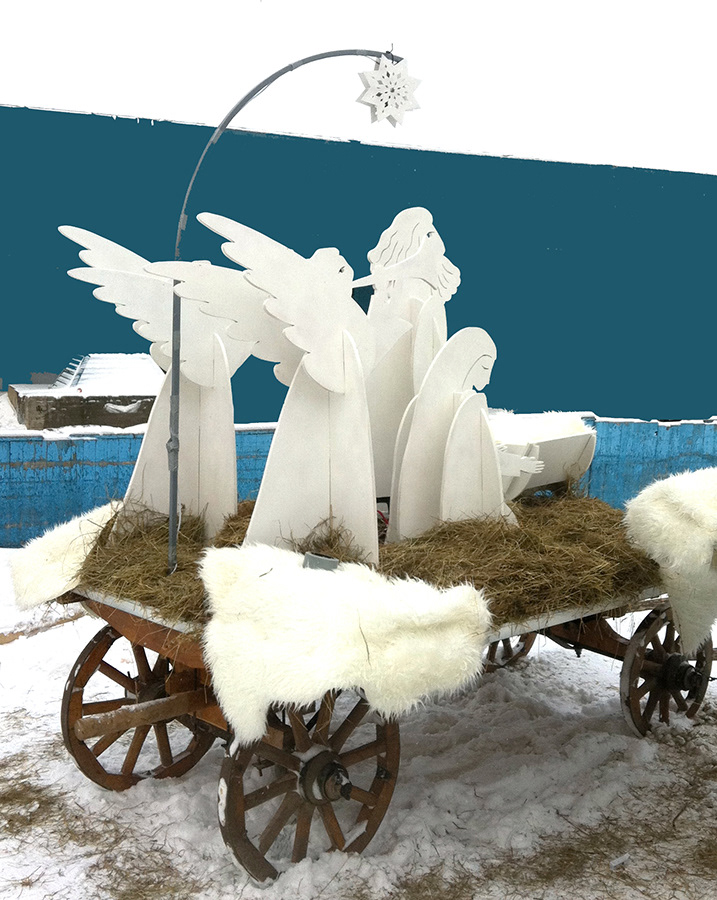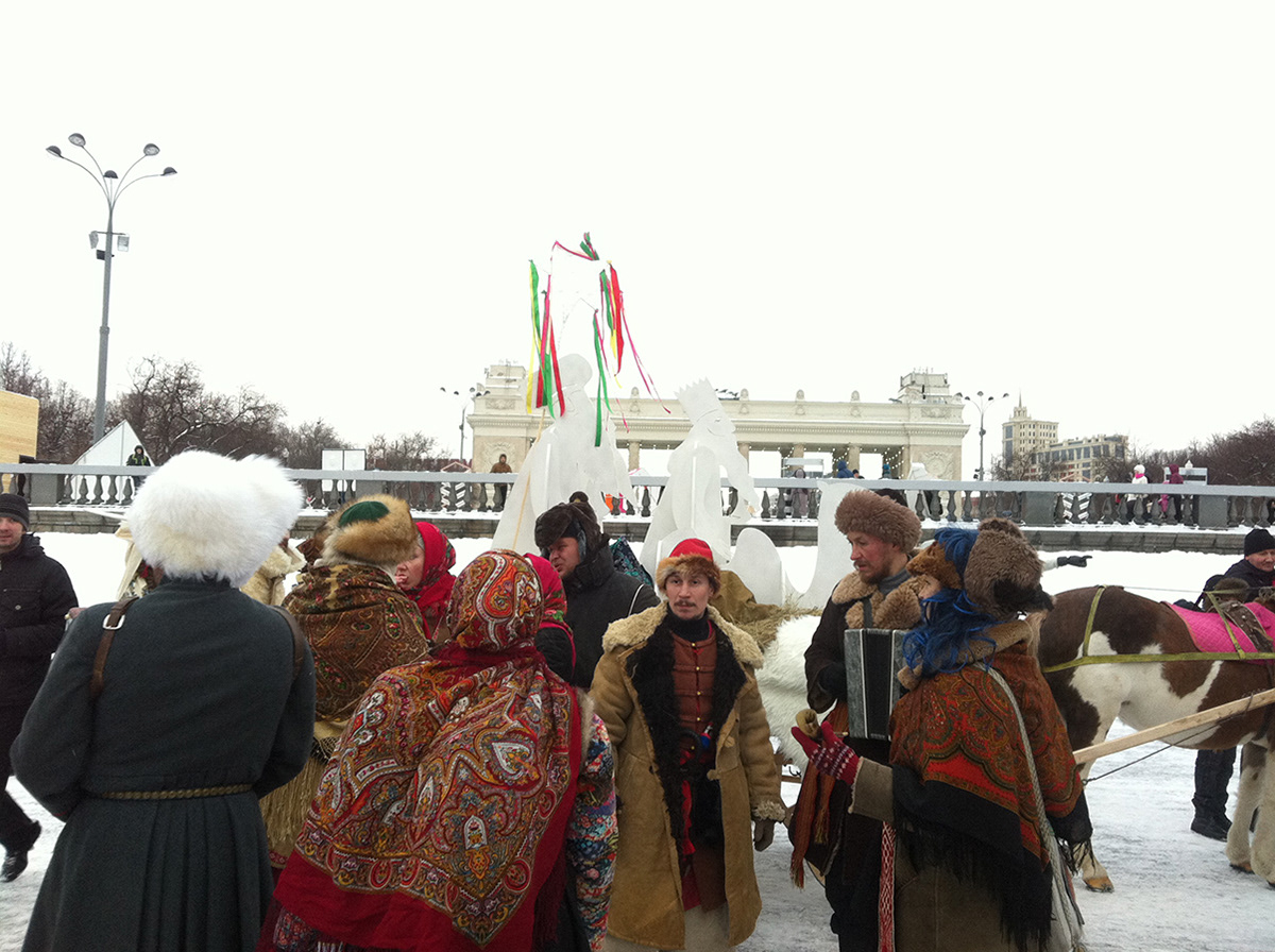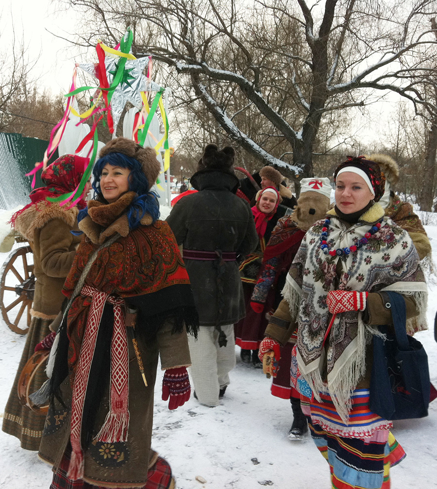 3 wagons drawn by horses and bringing Christmas procession were traveling through the park the whole day on Christmas accompanied by caroling artists singing and dancing Russian folk music.