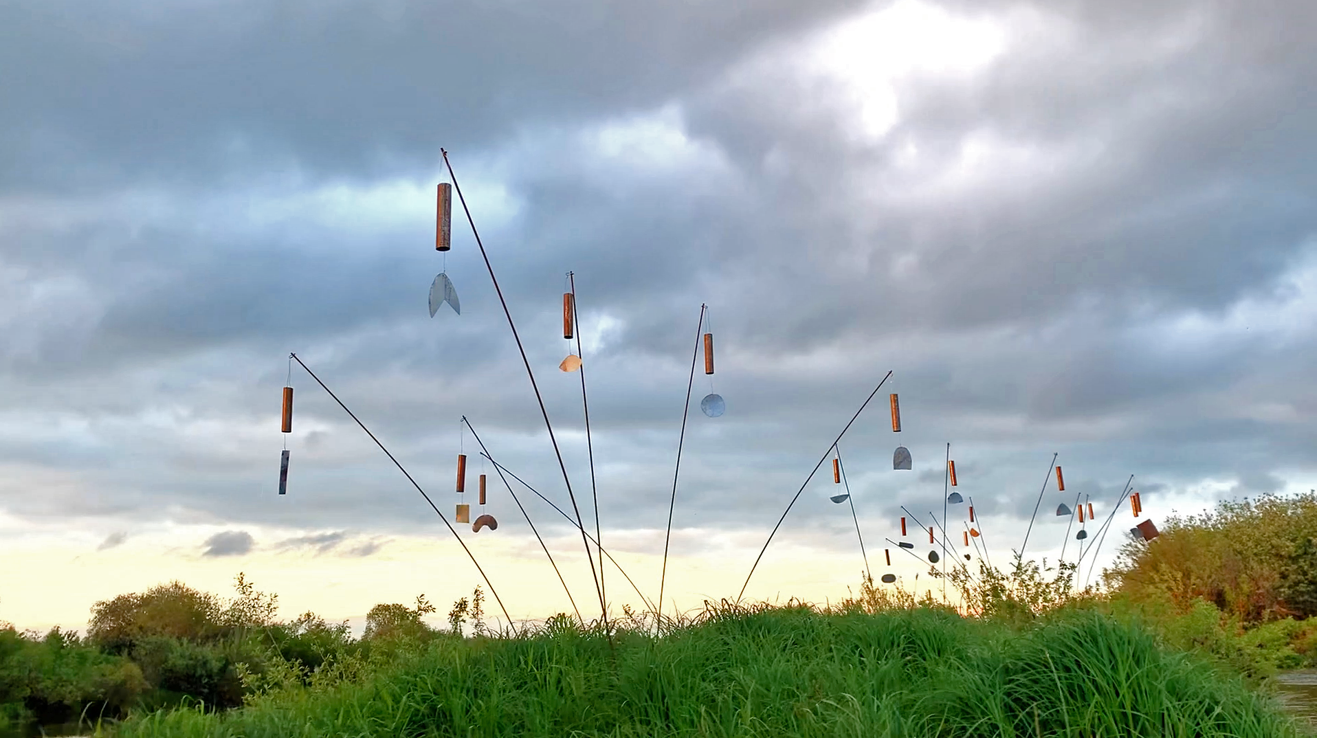 Simple but dearly loved Chimes installation, made in collaboration with an architect Ksenia Rakovskaya on the island of Nerl river as a part of "Prayer" art laboratory of Reka Mira project. Suzdal region.